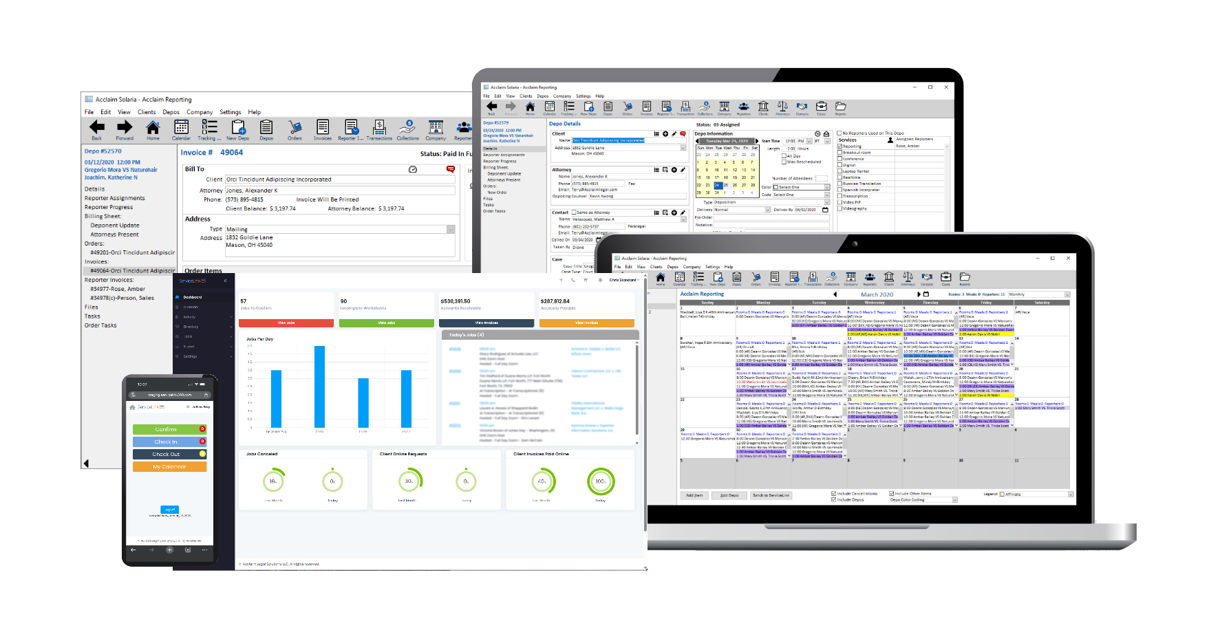 Are you trying to reduce costs and increase efficiency in your reporting firm? Frustrated at how many steps and windows you have to go through to do a simple task? Acclaim Legal's software is the right solution for you!